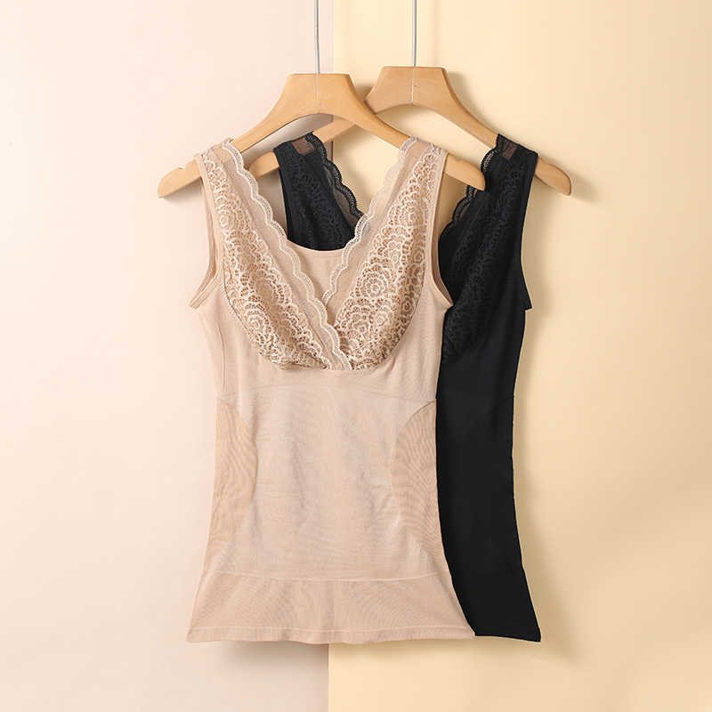Women Sleeveless Velvet Fleece Vest Camisole With Lace